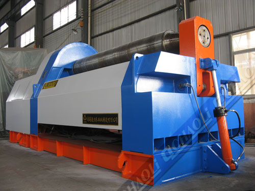 弧線四輥卷板機的兩側(cè)輥做弧線升降運動,下輥和兩側(cè)輥升降采用液壓傳動。升降位移采用計算機控制、液壓控制翻到,設備采用NC或CNC控制。