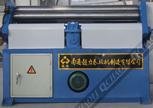 該機結(jié)構(gòu)型式為三輥非對稱式,下輥為主傳動,并做垂直升降運動,以便夾緊板材。通過下輥齒輪與上輥齒輪嚙合,同時作為主傳動,側(cè)輥作傾升降運動。具有預(yù)彎、卷圓多重功能,結(jié)構(gòu)緊湊操作維修方便。