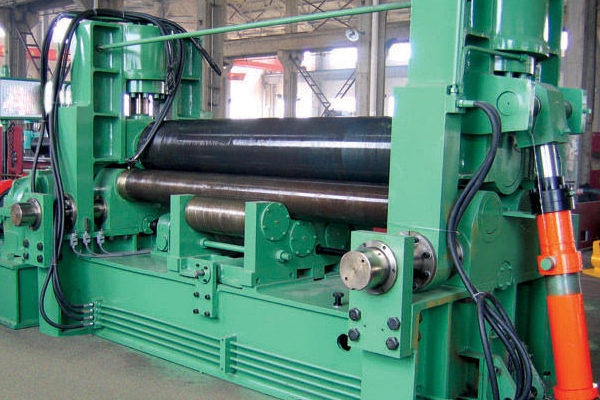 卷板機(jī)是一種將金屬板材卷彎成筒形、弧形或其它形狀工件的通用設(shè)備。根據(jù)三點(diǎn)成圓的原理,利用工件相對(duì)位置變化和旋轉(zhuǎn)運(yùn)動(dòng)使板材產(chǎn)生連續(xù)的塑性變形,以獲得預(yù)定形狀的工件。機(jī)械式三輥卷板機(jī)可以分為三輥機(jī)械對(duì)稱式卷板機(jī)和三輥機(jī)械非對(duì)稱式卷板機(jī)??蓪⒔饘侔宀木沓蓤A形、弧形和一定范圍內(nèi)的錐形工件。